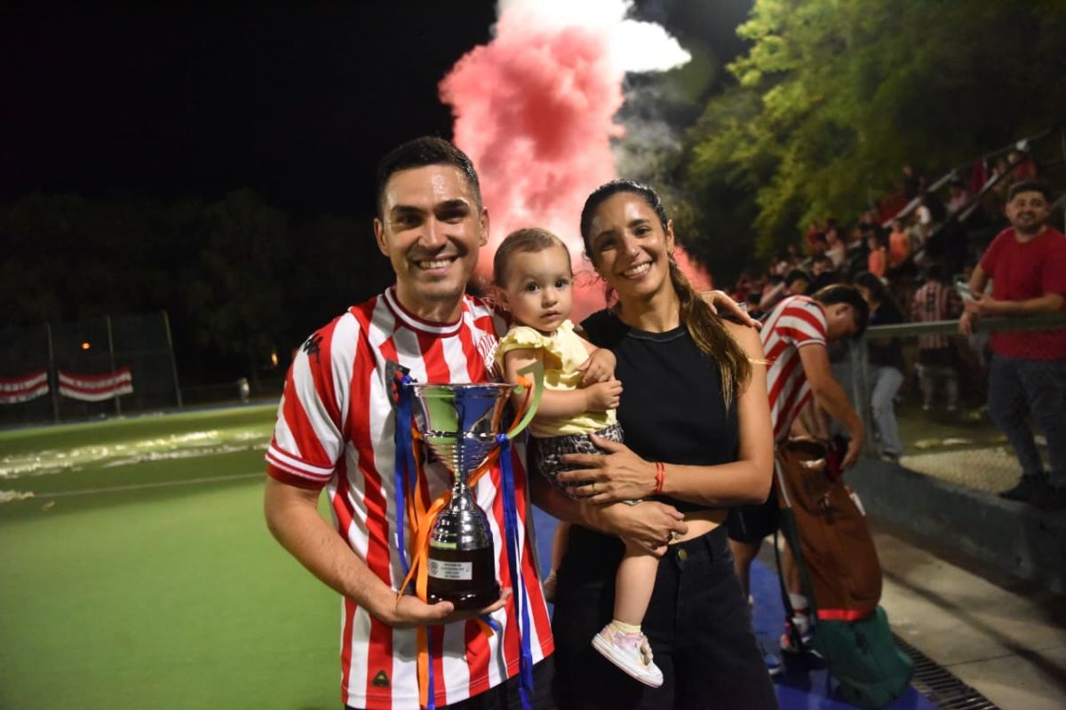 Mientras los jugadores saludaban a la familia y a los amigos que se acercaban para festejar, la escena que más se repetía era la de padres, parejas e hijos abrazados alrededor de los protagonistas. Entre ellos, uno de los momentos más conmovedores lo protagonizó Nicolás Ordóñez, el capitán “santo”, junto a su pareja, Josefina Fernández, y su pequeña hija, también llamada Josefina, de apenas año y medio.