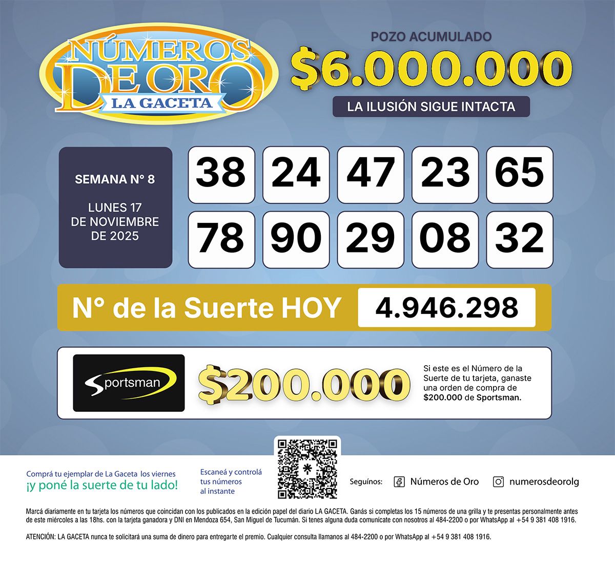 Los Números de Oro de LA GACETA del 17 de noviembre de 2025