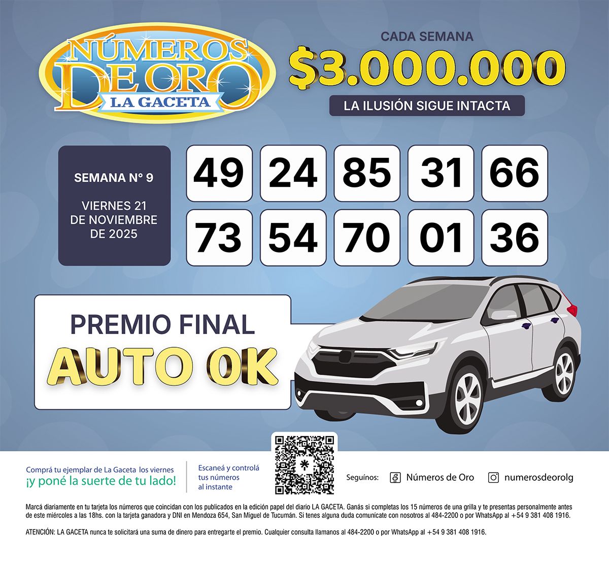 Los Números de Oro de LA GACETA del 21 de noviembre de 2025