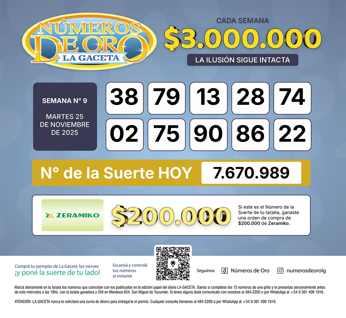 Los Números de Oro de LA GACETA del 25 de noviembre de 2025