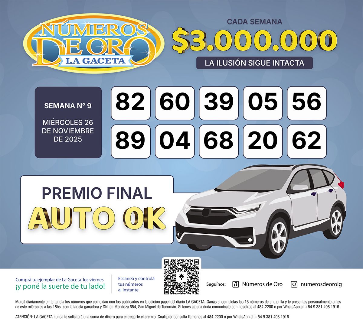 Los Números de Oro de LA GACETA del 26 de noviembre de 2025
