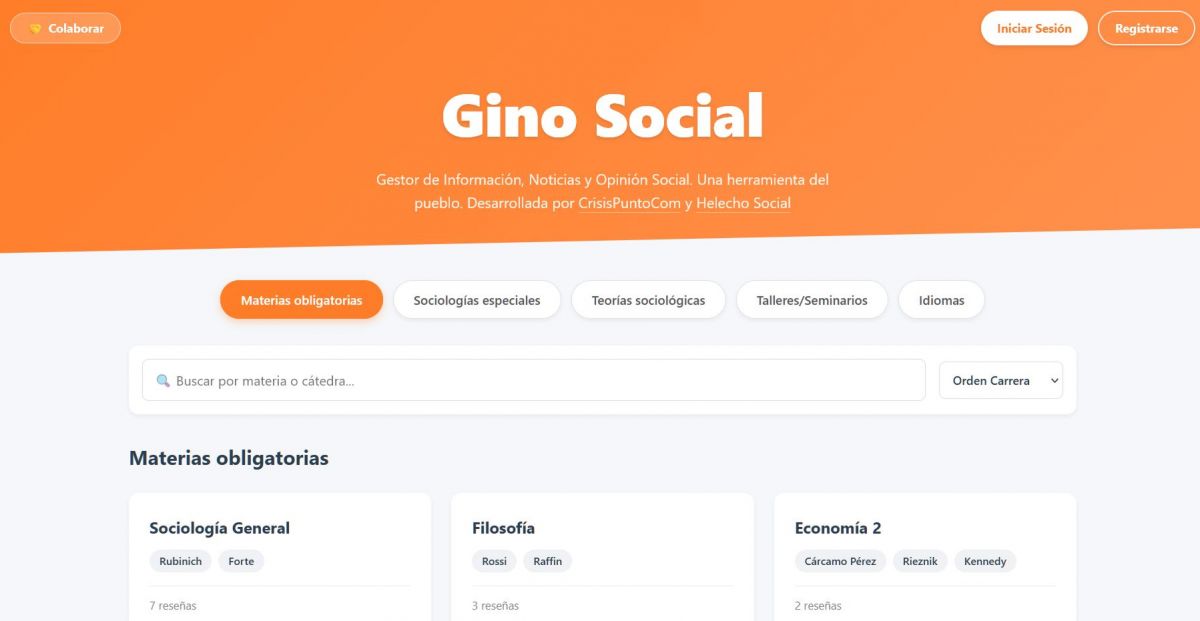 PLATAFORMA UNIVERSITARIA. Gino Social centraliza reseñas de cátedras de Sociología UBA. / CAPTURA DE PANTALLA