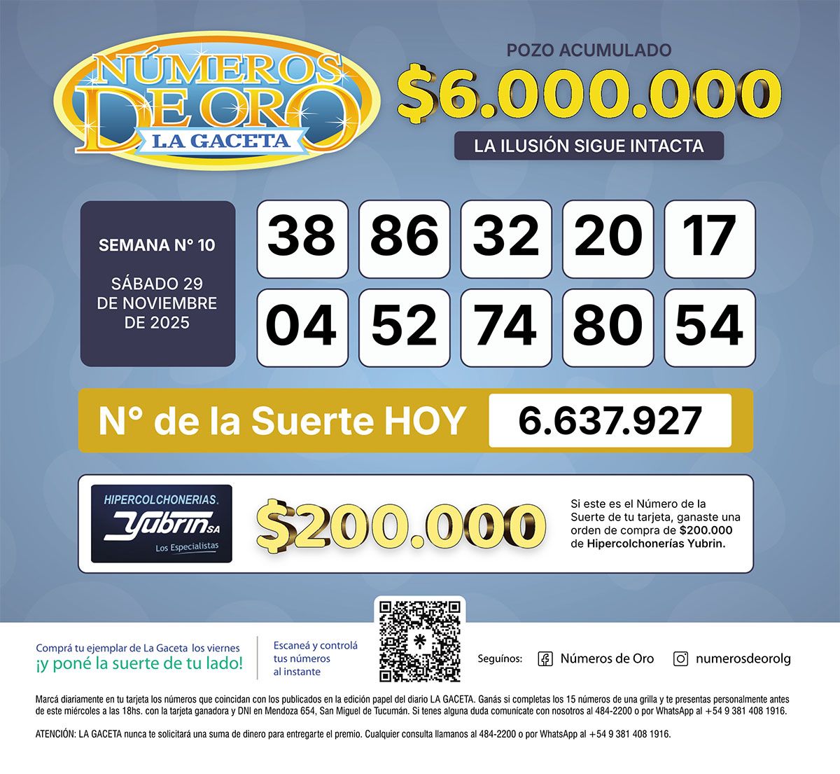 Los Números de Oro de LA GACETA del 29 de noviembre de 2025