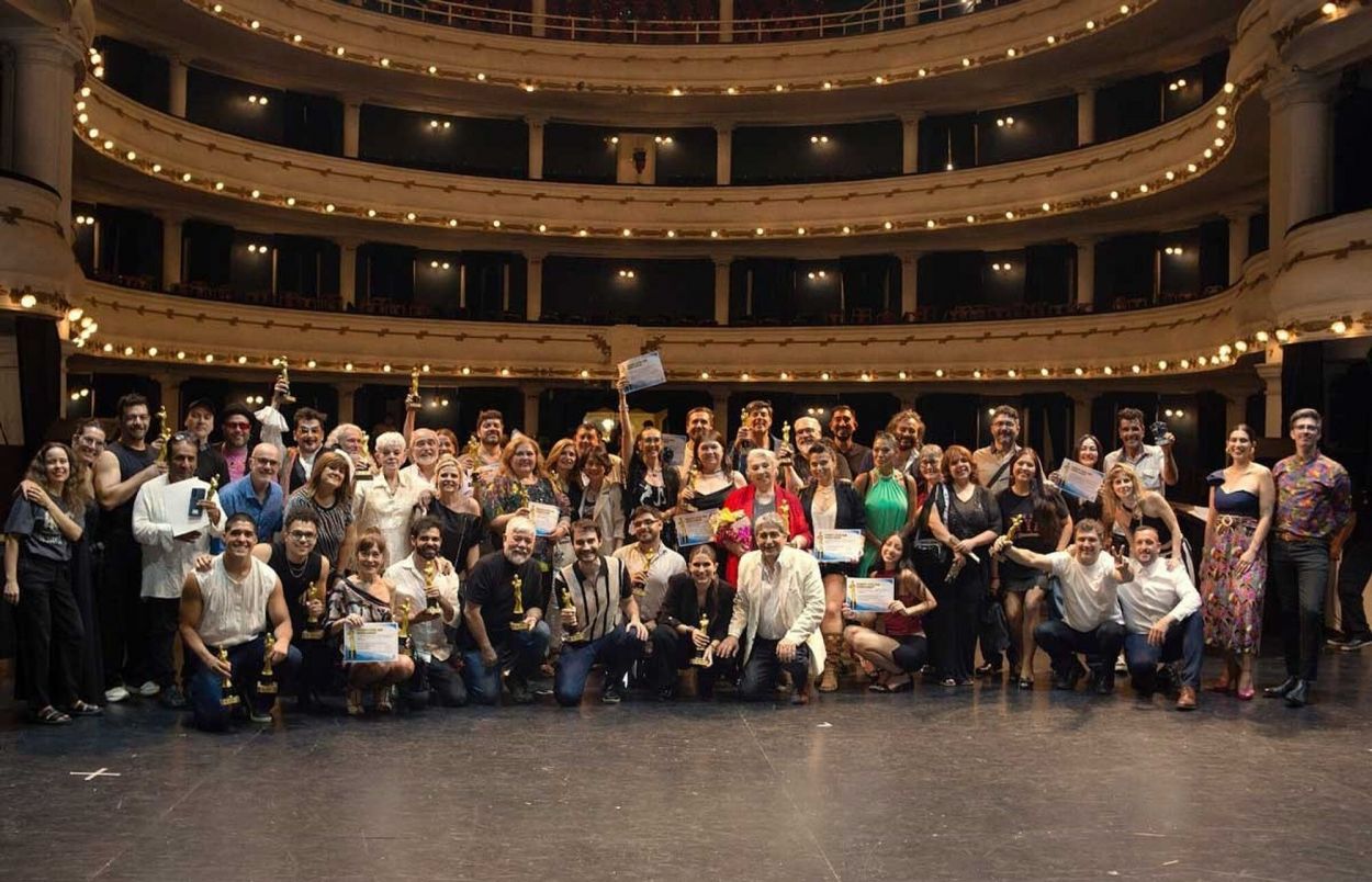 FOTO DE FAMILIA. Todos los ganadores y los postulantes a los premios Artea en el escenario del teatro San Martín, tras la entrega de las estatuillas.