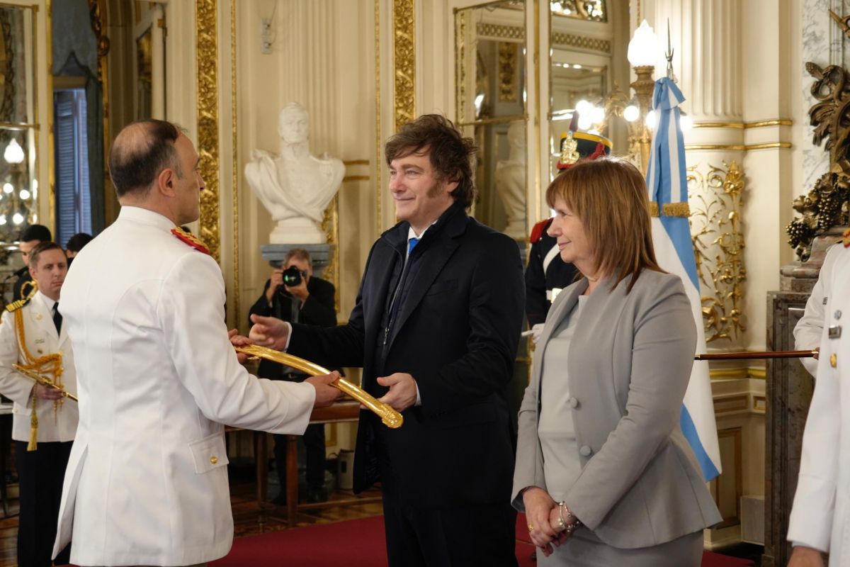 El acto contó además con la presencia del jefe de Gabinete, Manuel Adorni, y de la secretaria general de la Presidencia, Karina Milei, quienes siguieron la ceremonia desde un costado del Salón Blanco. Monteoliva, futura ministra de Seguridad, también estuvo presente.