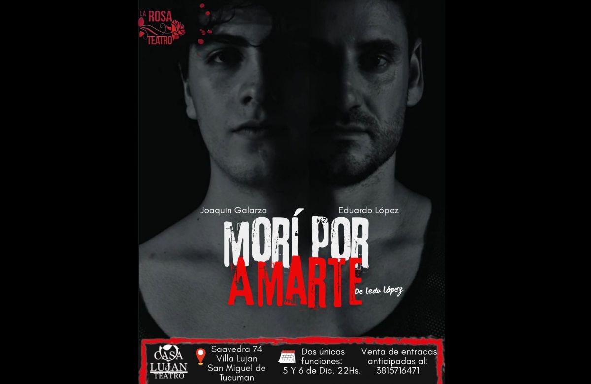 La productora teatral Casa Luján presenta este fin de semana en Tucumán una de las obras jujeñas más comentadas de la temporada: “Morí por Amarte”, escrita y dirigida por Eduardo “Ledu” López e interpretada por el grupo independiente La Rosa Teatro, compañía con 26 años de trayectoria.
