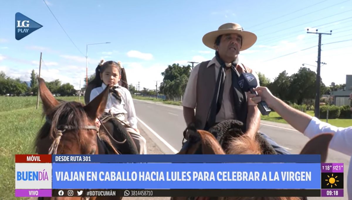 A la vera de la ruta 321, en el camino hacia Lules, una escena inesperada despertó la ternura durante el móvil de LA GACETA: un abuelo y su nieta avanzaban lentamente a caballo rumbo a la celebración en honor a la Virgen. La pequeña, de apenas seis años, montaba sola con sorprendente seguridad.