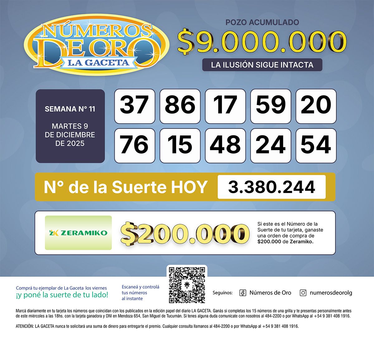 Los Números de Oro de LA GACETA del 9 de diciembre de 2025