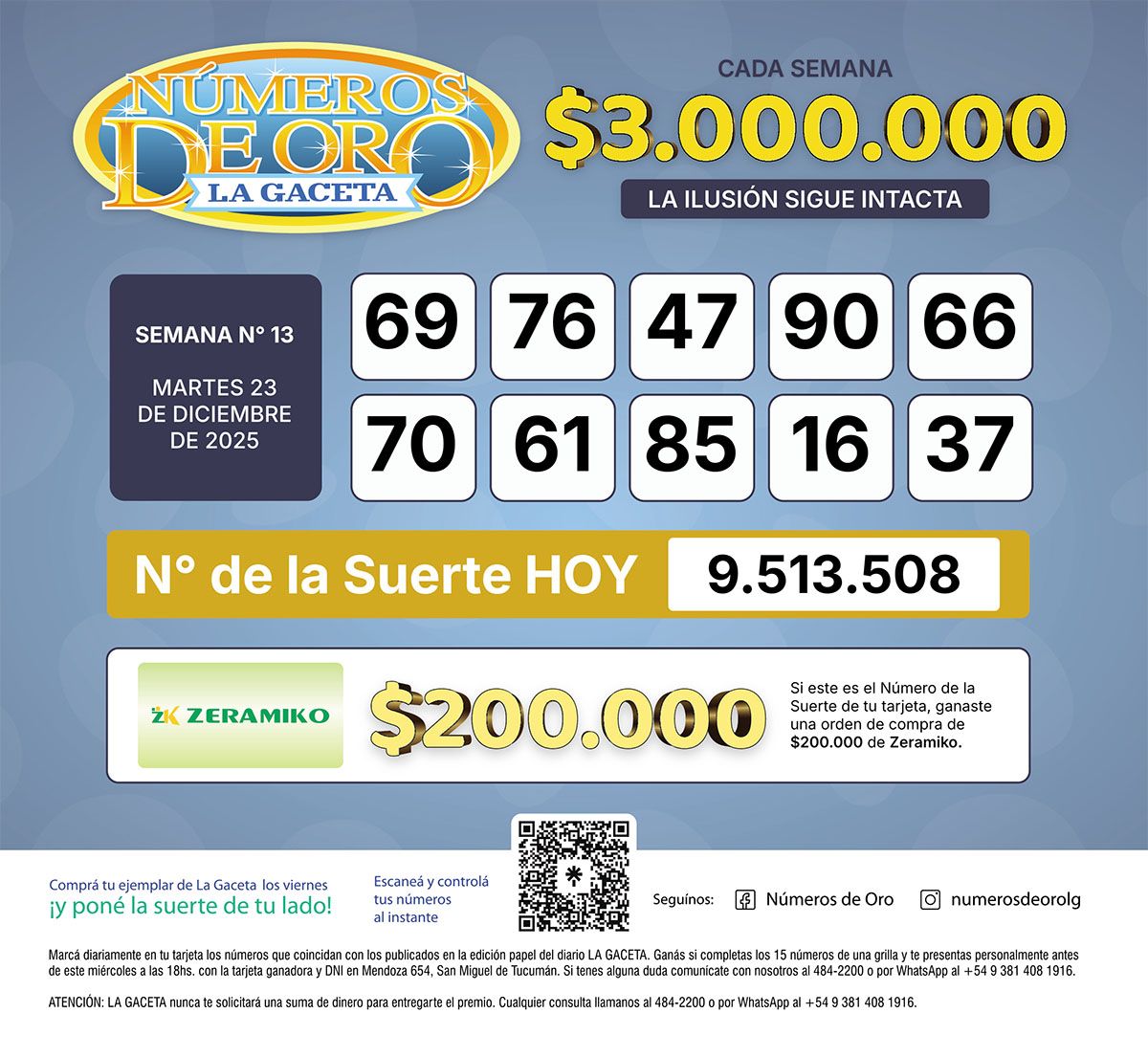 Los Números de Oro de LA GACETA del 23 de diciembre de 2025