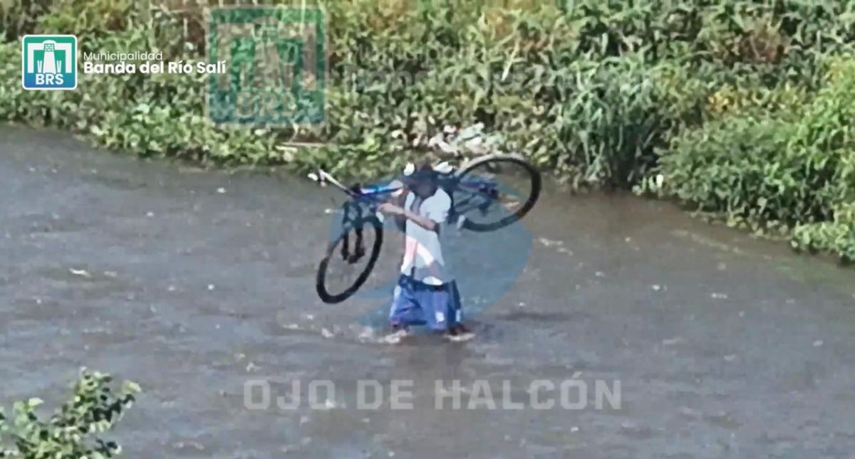 A partir de esa comunicación, el personal de visualización inició un seguimiento mediante los domos ubicados en la rotonda de ingreso a la ciudad, el puente Lucas Córdoba y otros puntos estratégicos. La tarea fue reforzada por el uso del sistema aéreo de vigilancia conocido como “Ojo de Halcón”, que permitió monitorear la secuencia de cómo el individuo cruzaba el río a pie, dejando a un niño del otro lado.