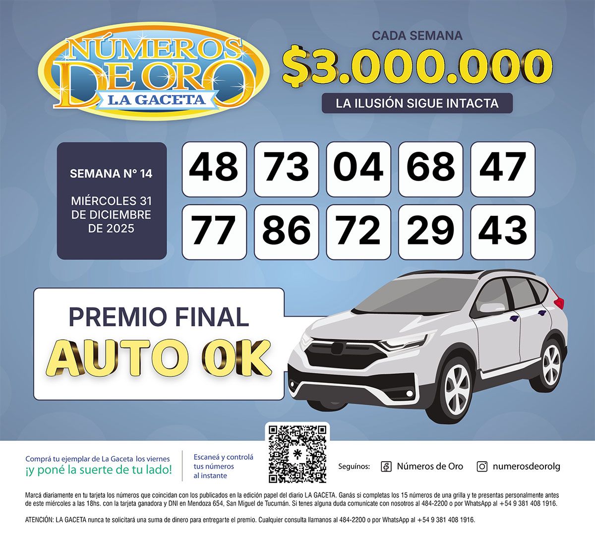 Los Números de Oro de LA GACETA del 31 de diciembre de 2025