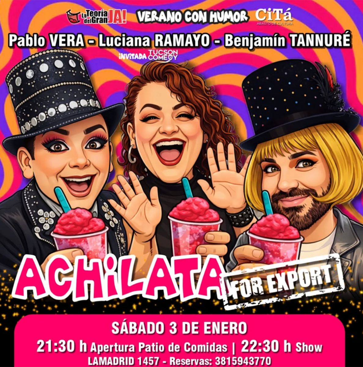 La Teoría del Gran JA! invita a vivir una noche ideal para combatir el calor con risas, música y mucho humor. En el marco de su ciclo “Verano con Humor”, presenta el espectáculo "Achilata for export", una propuesta fresca, dinámica y pensada para disfrutar del verano a pura carcajada.