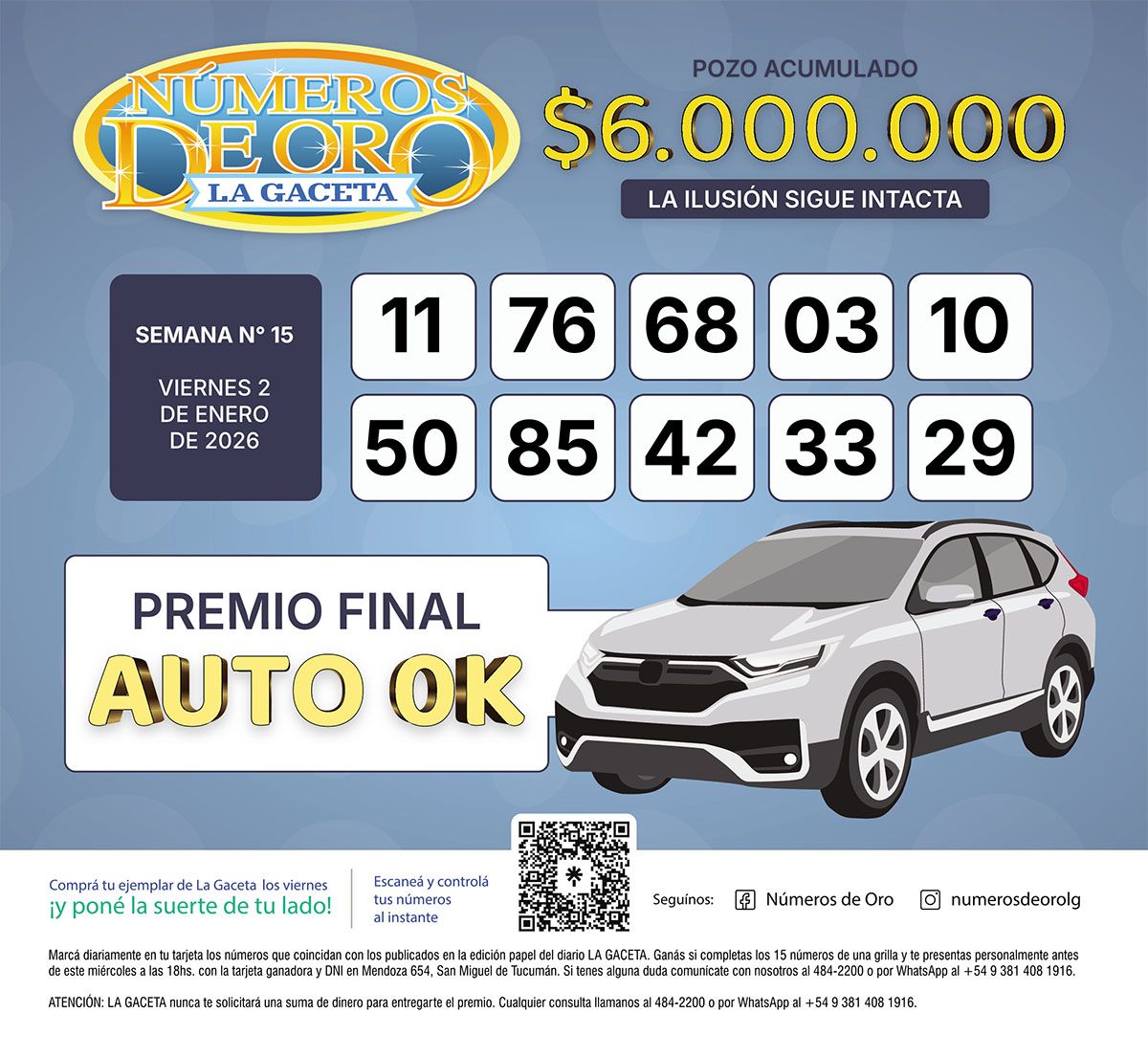 Los Números de Oro de LA GACETA del 2 de enero de 2026