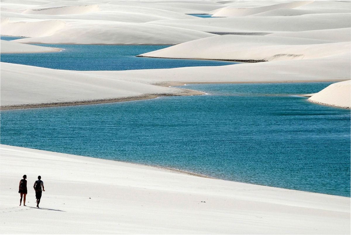 Lençóis Maranhenses es un escenario sin principio ni final, una dimensión infinita de arena y piletas naturales efímeras con aguas turquesas que se extiende por 1.500 km² en la remota costa del estado de Maranhão, al noreste de Brasil. Lençóis («láminas» en portugués) se refiere a una vasta extensión de dunas de arena blanca donde, durante unos meses al año (aproximadamente de mayo a octubre), aparecen miles de lagunas de agua dulce: brillantes espejos de color turquesa entre las ondulantes montañas de arena.