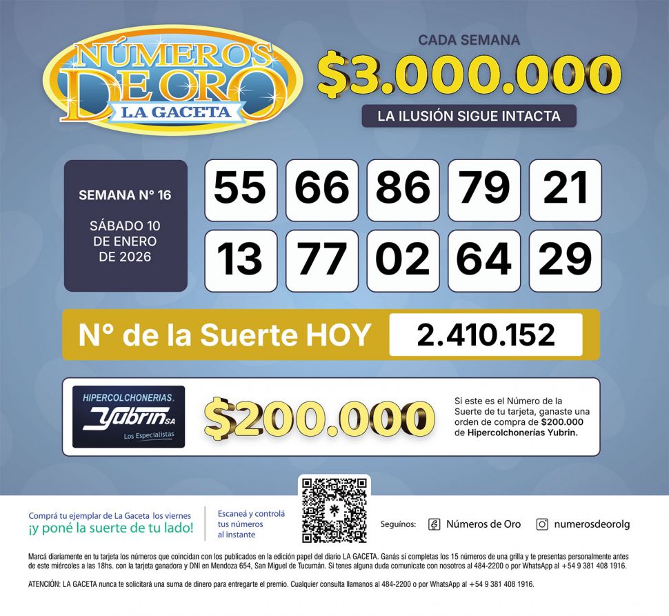 Los Números de Oro de LA GACETA del sábado 10 de enero de 2026
