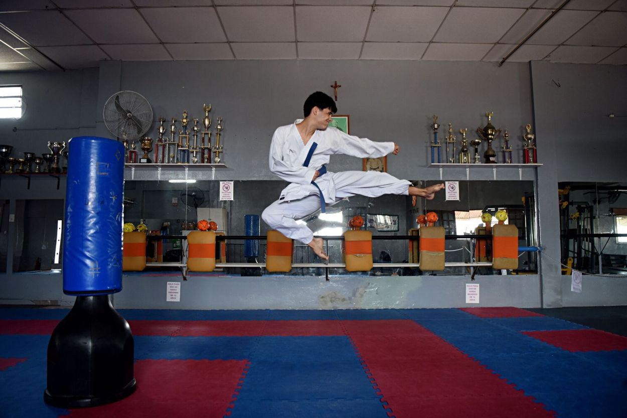 Parece una de esas clásicas películas orientales de artes marciales, con sus protagonistas suspendidos en el aire mientras practican los más extraordinarios movimientos de combate. Pero si bien lo de Lisandro Fontana alcanza una plasticidad artística, lo suyo es totalmente real. En el dojo -escenario donde se registró la producción fotográfica- construye día a día una carrera que lo ubica como una de las grandes promesas del karate argentino. Es nada menos que subcampeón panamericano y este año lo aguardan enormes desafíos, con el Mundial de Polonia y -tal vez- los Juegos Olímpicos de la Juventud a la cabeza. Con sólo 16 años, su historia en el deporte apenas está empezando.