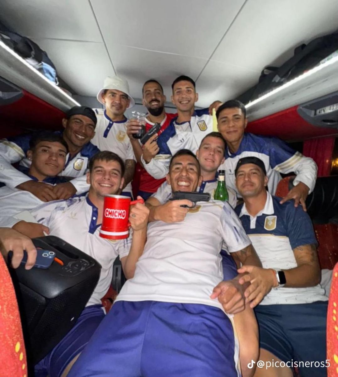 Sin embargo, la clasificación deportiva se vio opacada por una imagen que se viralizó a través de las redes sociales. En la foto, tomada dentro del ómnibus durante el regreso del grupo a Tucumán, se observa a varios jugadores del plantel celebrando con bebidas alcohólicas y exhibiendo lo que aparentan ser armas de fuego. Entre quienes aparecen en la imagen se identifican Bruno Medina y Felipe Estrada, ambos sonriendo a la cámara con pistolas en las manos, y junto a Franco Flores, Carlos Cisneros, Franco Barrera, Damián Ovejero y Néstor Tonini, entre otros.