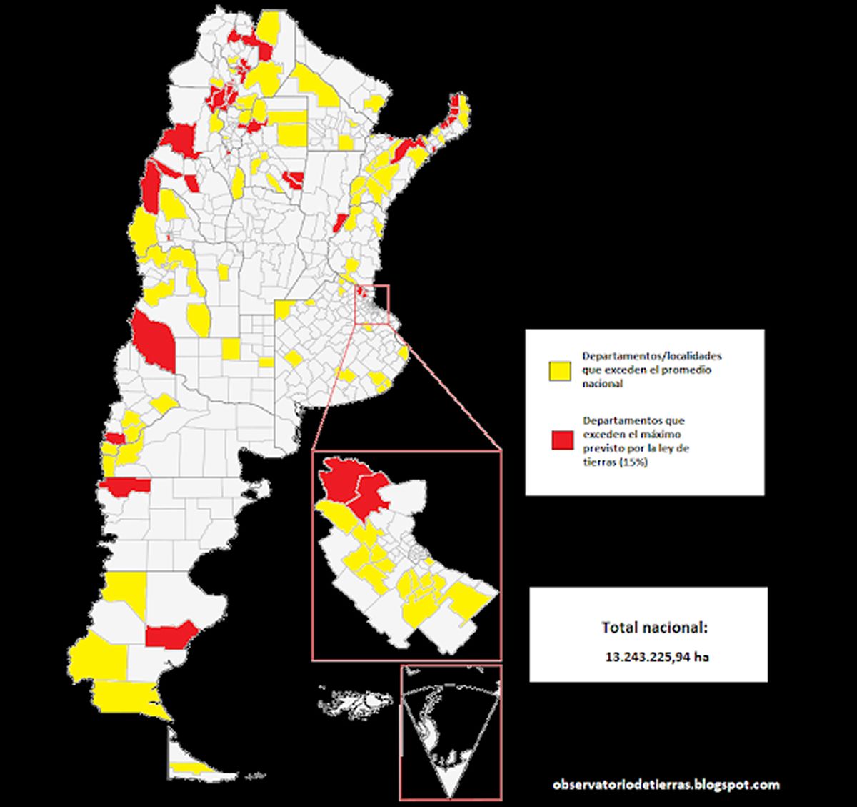 El informe arrojó que aproximadamente el 5% del territorio nacional está en manos de firmas o estados extranjeros. El porcentaje representa más de 13 millones de hectáreas, una extensión equivalente a la superficie total de Inglaterra.
