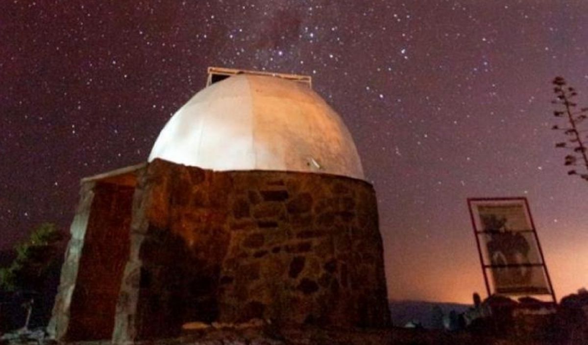 El camino es una pendiente que comienza en la ruta. Los carteles señalan que estamos en un trayecto cósmico. Empieza con el big bang, hace 13.800 millones de años, y termina 400 metros más arriba, en el observatorio y con la aparición del hombre. El guía hace paradas piadosas en cada hito cosmológico y explica de tal manera que no sea un cansancio científico digamos. No sé si hay antecedentes de esta filosofía: matizar la subida explicando el origen del universo.