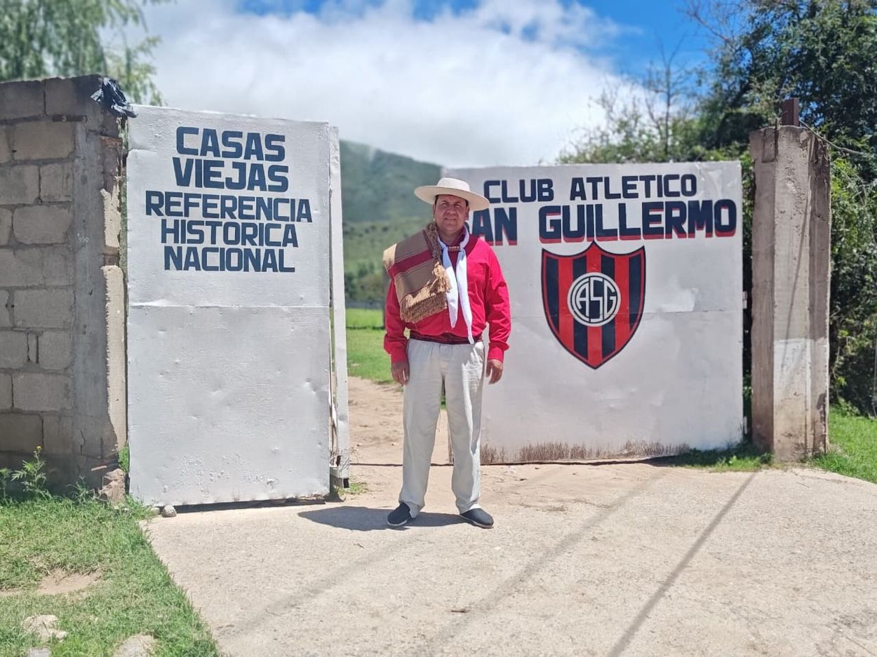 Julio Peñalva está vestido y listo para cantar. Lleva el sombrero bien calzado, una camisa roja, el pañuelo al cuello y el poncho en el hombro. No es una puesta en escena: es su forma de estar. Así llega a la cancha de San Guillermo, el club de Tafí del Valle que preside, con la voz preparada y el cuerpo acostumbrado a pasar de una tarea a otra sin pedir permiso.
