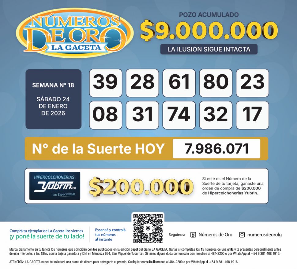 Los Números de Oro de LA GACETA del 24 de enero de 2026