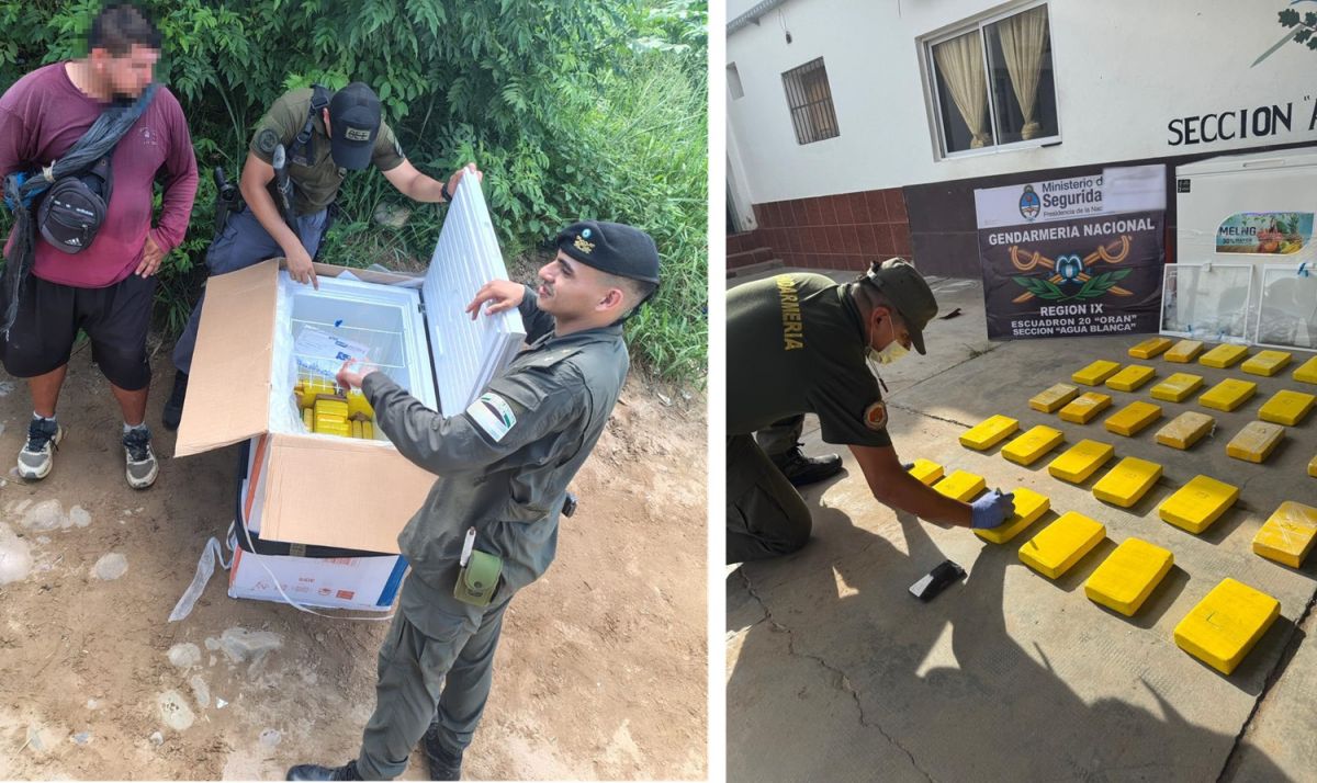 Los efectivos del Destacamento "Móvil 5" con apoyo de la Sección "Agua Blanca", dependientes del Escuadrón 20 "Orán", Salta, desplegados en la zona fronteriza con el país vecino cuando notaron a un hombre que transportaba un freezer de mediano porte sobre su espalda.