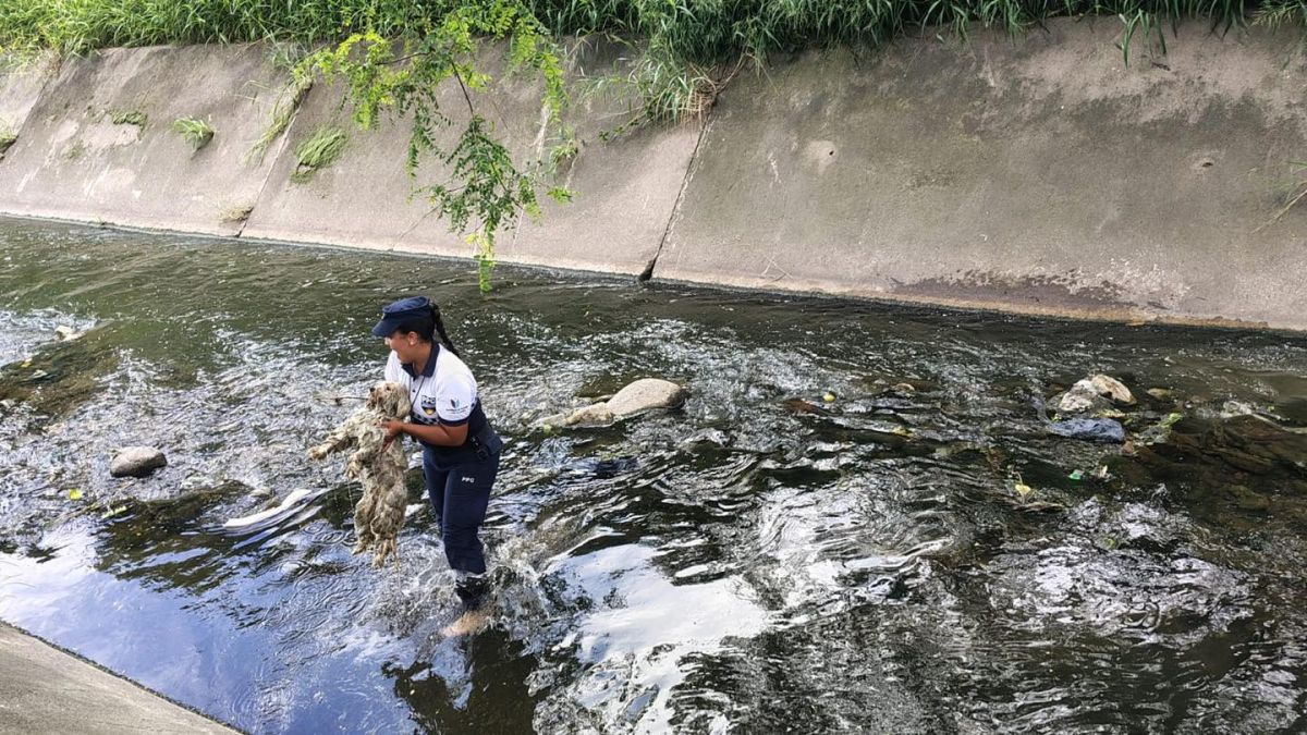 El hecho ocurrió cuando un vecino alertó al personal sobre la caída de un perro a un canal cercano. Ante el aviso, los agentes que se encontraban realizando tareas a pie en el sector actuaron de manera inmediata y coordinaron el operativo con el móvil del parque.