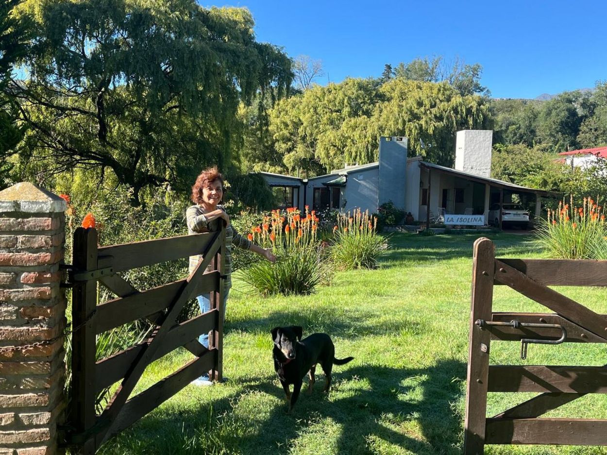 ¡ADELANTE! Mónica Valdez posa junto al portón de entrada de “La Isolina”, su casa de Tafí de Valle que ofrece en la plataforma Home Exchange.