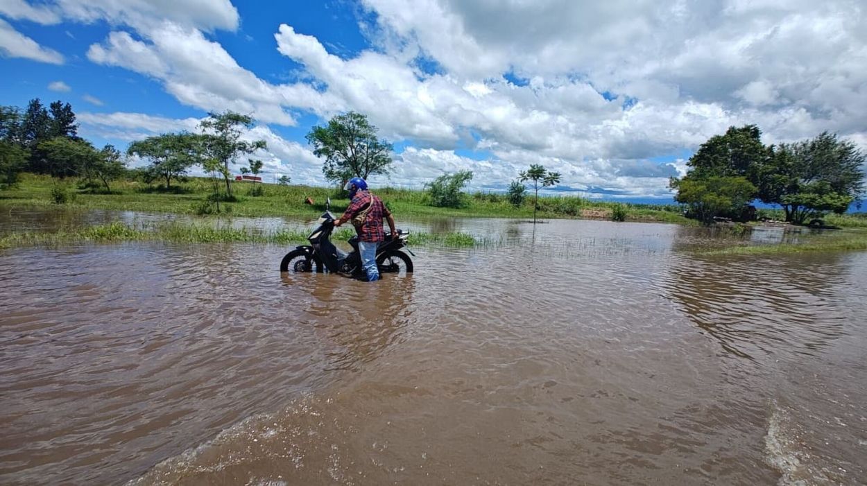 AMENAZA. Camino a Villa Chicligasta podía verse cómo el agua ya estaba a pocos metros de las casas.