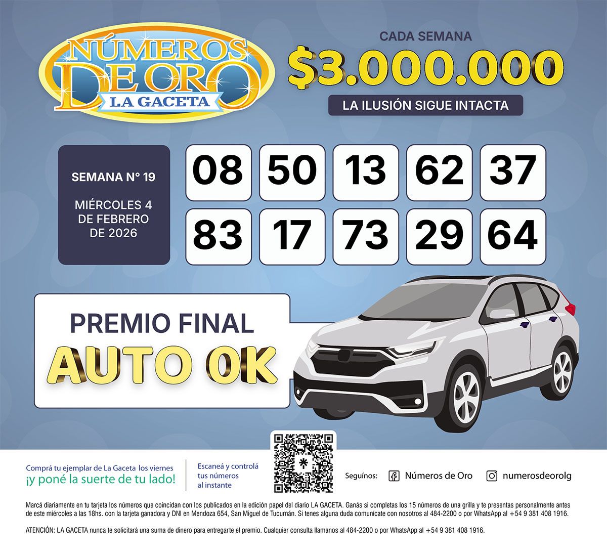 Esta es la grilla completa de los Números de Oro de LA GACETA del 4 de febrero de 2026