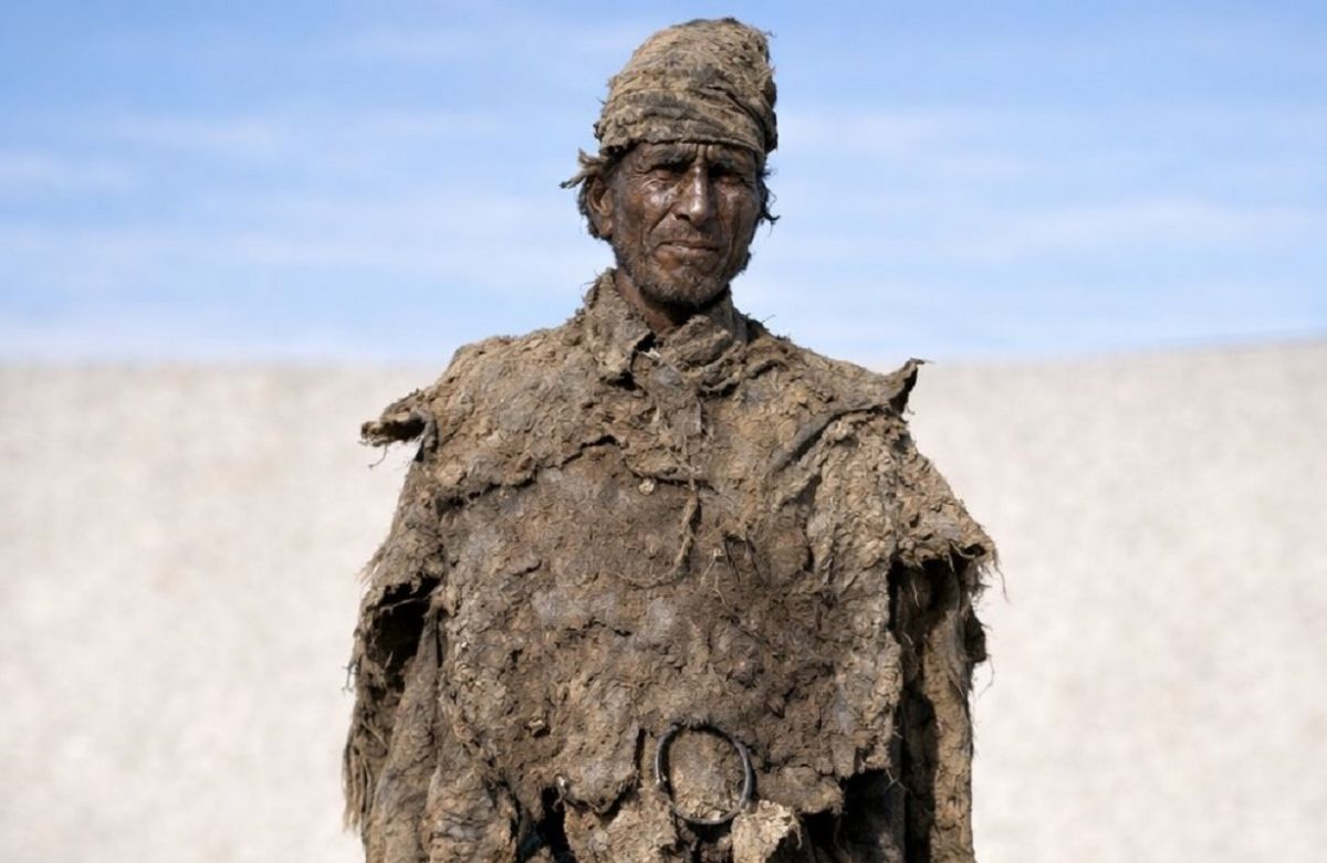 La imagen impresiona incluso más de un siglo después. El hombre aparece de pie, solo, recortado contra un fondo áspero y despojado. Viste harapos endurecidos por el barro y el polvo del camino; una túnica irregular, rota en los bordes, ceñida apenas por un cinto tosco del que cuelga una argolla metálica. La tela parece hecha de restos, de retazos cosidos por la necesidad más que por la técnica. En la cabeza lleva un gorro rudimentario, también gastado, que cubre apenas un rostro curtido por el sol, la intemperie y el tiempo.