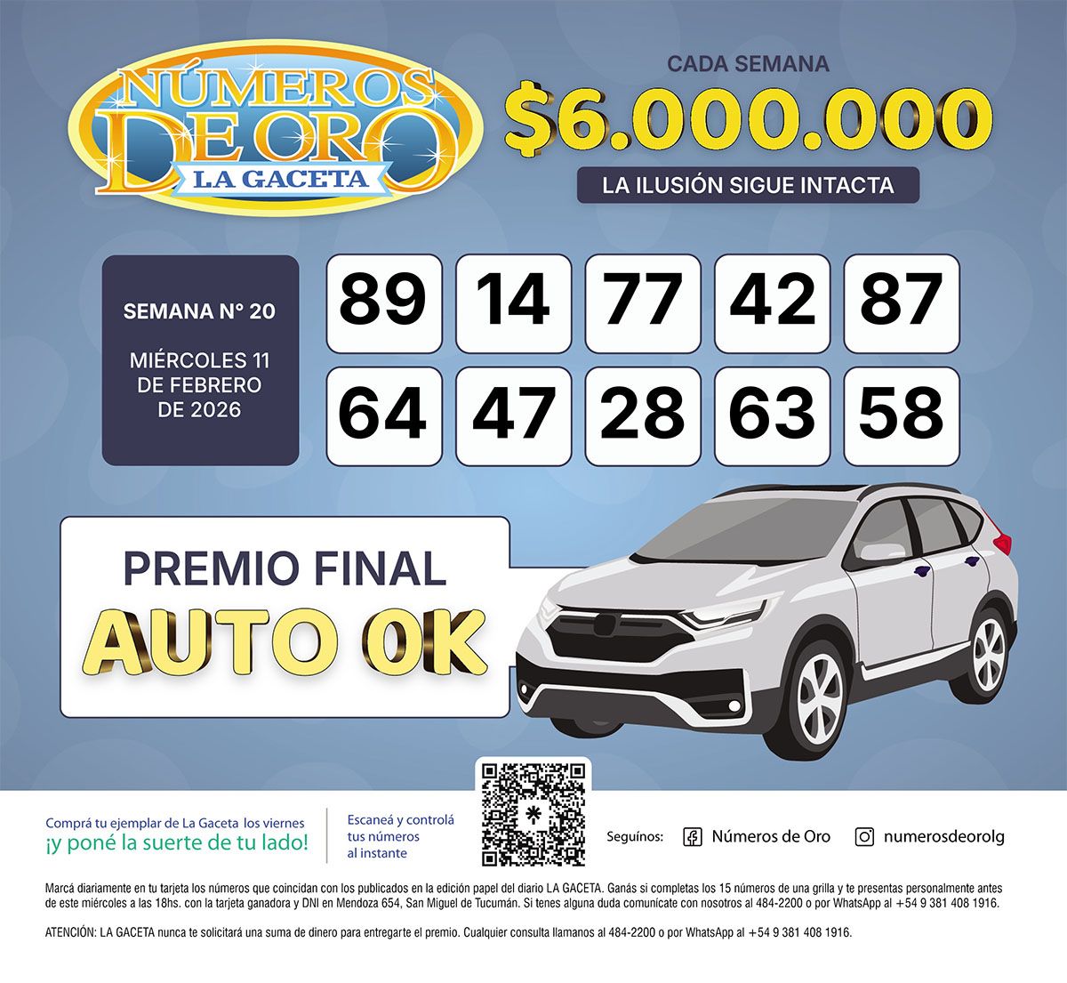 Esta es la grilla completa de los Números de Oro de LA GACETA del 11 de febrero de 2026