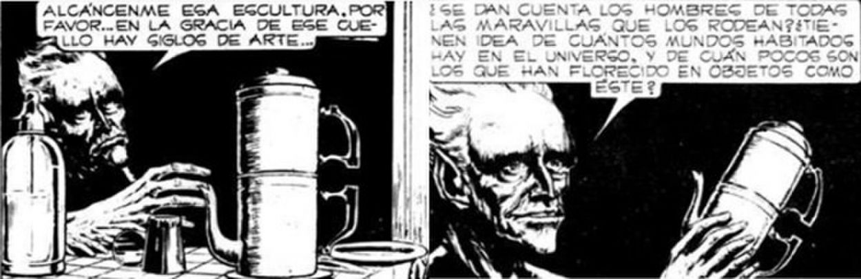 “En El Eternauta, hay una escena inquietante: el ‘mano’ contempla objetos humanos con una mezcla de fascinación y extrañeza. Es una mesa cualquiera, con un sifón y una cafetera. Lo que para nosotros es trivial para él es maravilla. No sólo porque sean técnicamente complejos, sino porque condensan siglos de cultura, historia y sentido sin que quienes los usan reparen en ello.