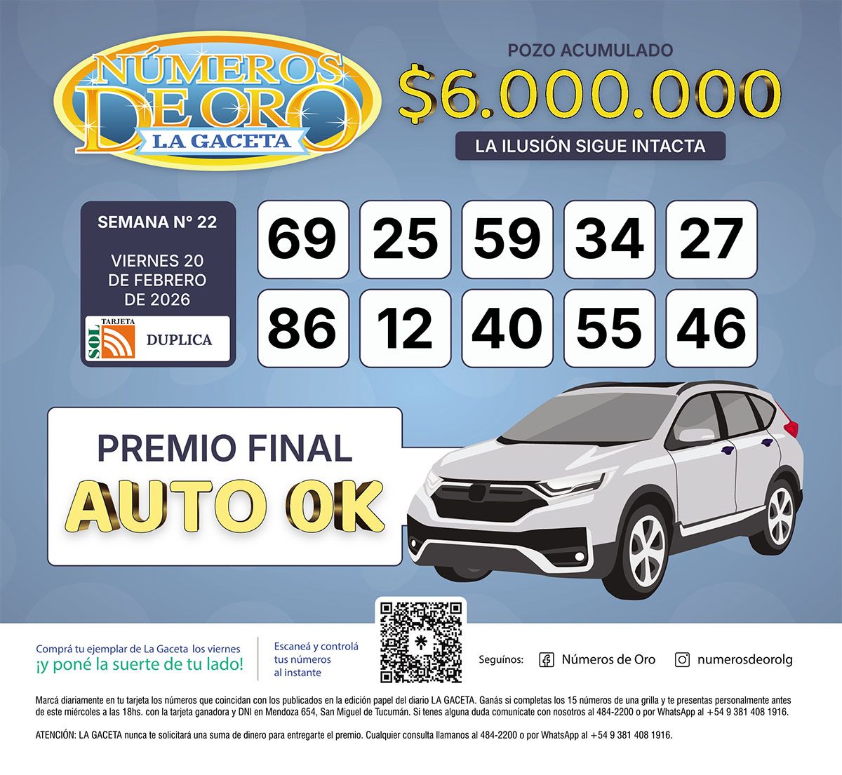 Los Números de Oro de LA GACETA del 20 de febrero de 2026