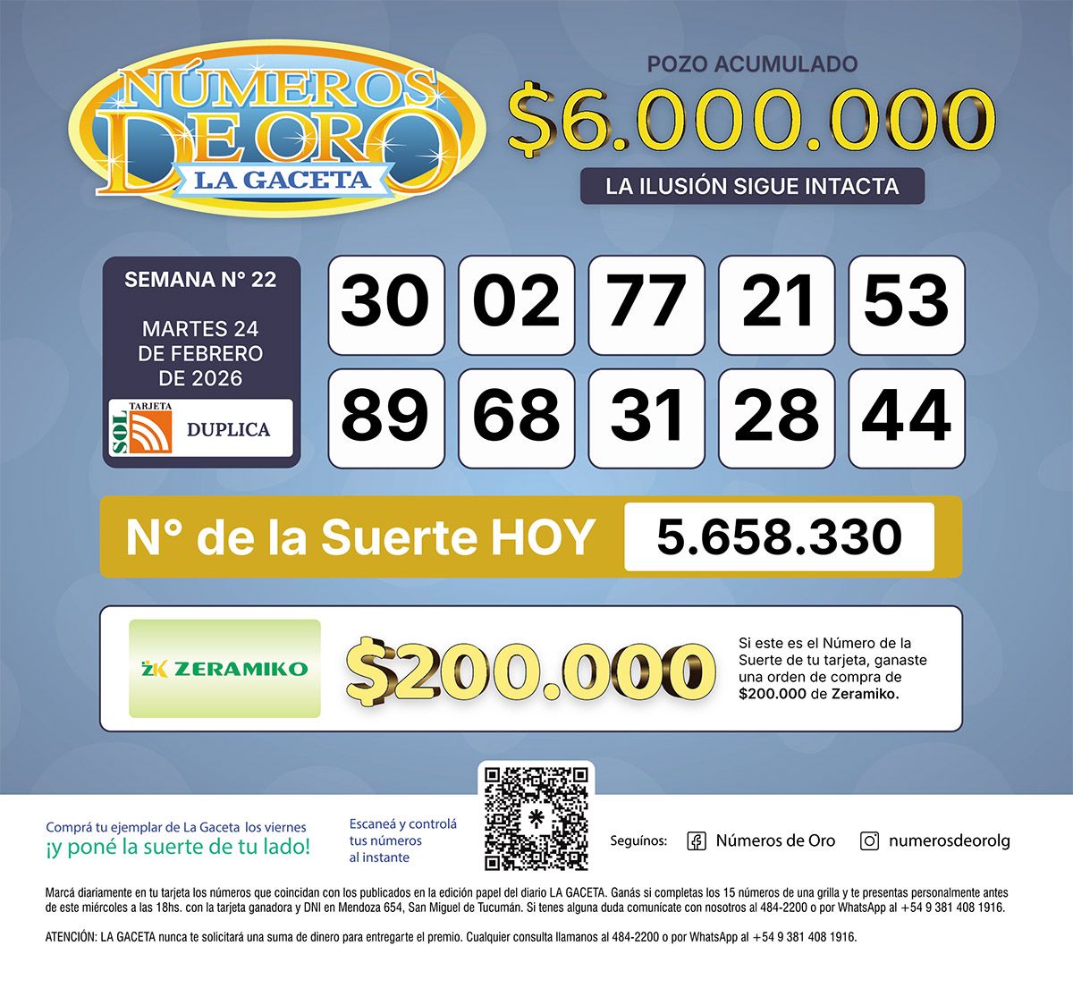 Los Números de Oro de LA GACETA del 24 de febrero de 2026