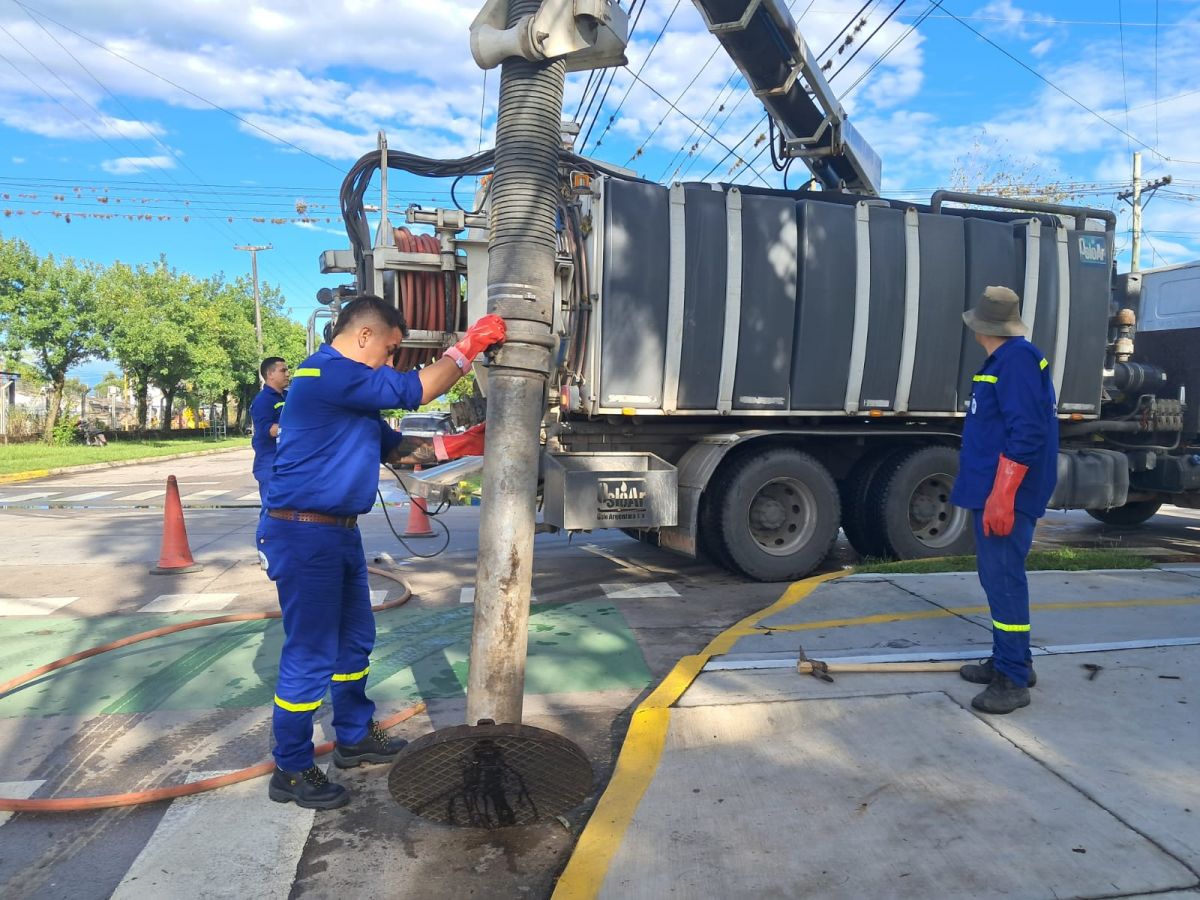 Las tareas incluyen el paso de manguera en colectoras, limpieza de bocas de registro y desobstrucción de conexiones domiciliarias, trabajos que se desarrollan durante los días 23 y 24 de febrero en numerosos barrios, entre ellos 240 Viviendas, Matienzo, Saavedra, 9 de Julio, Belgrano, Independencia, Alvear, 25 de Mayo, Santa Rita, Esperanza y Jorge Flores, entre otros sectores de la ciudad.