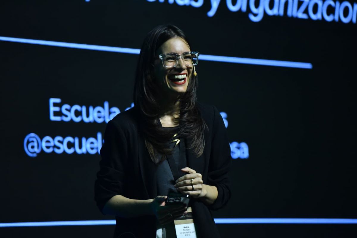EXPERTA EN TECNOLOGÍA Y EDUCACIÓN. Melina Masnatta durante su exposición sobre aprendizaje, trabajo e inteligencia artificial ante un auditorio colmado. / LA GACETA, OSVALDO RIPOLL