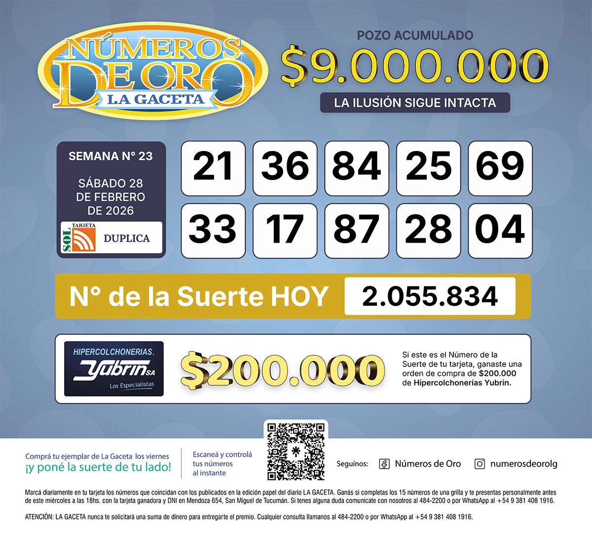 Los Números de Oro de LA GACETA del 28 de febrero de 2026