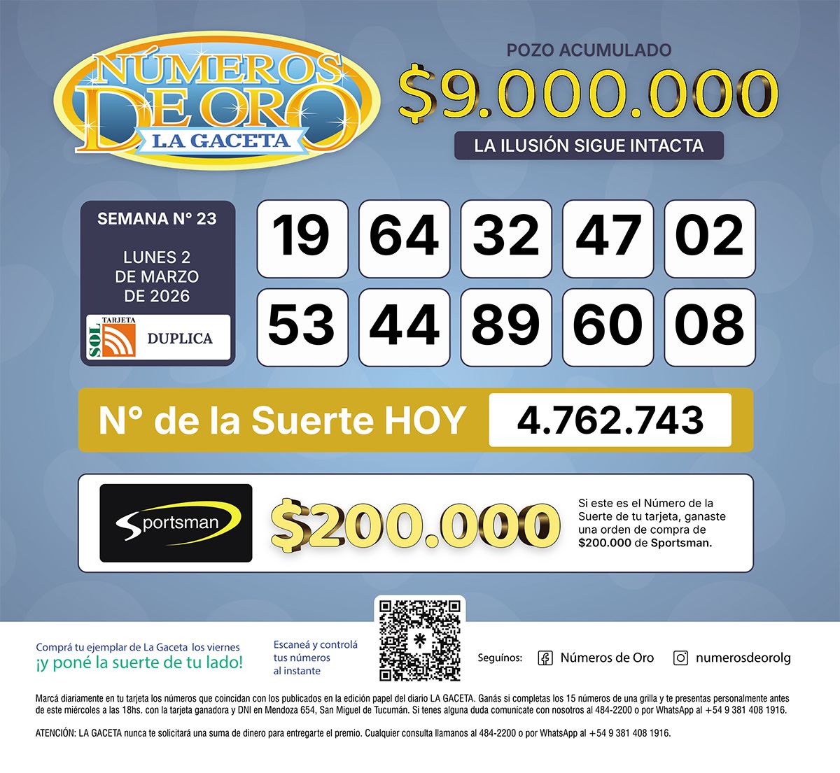 Los Números de Oro de LA GACETA del 2 de marzo de 2026