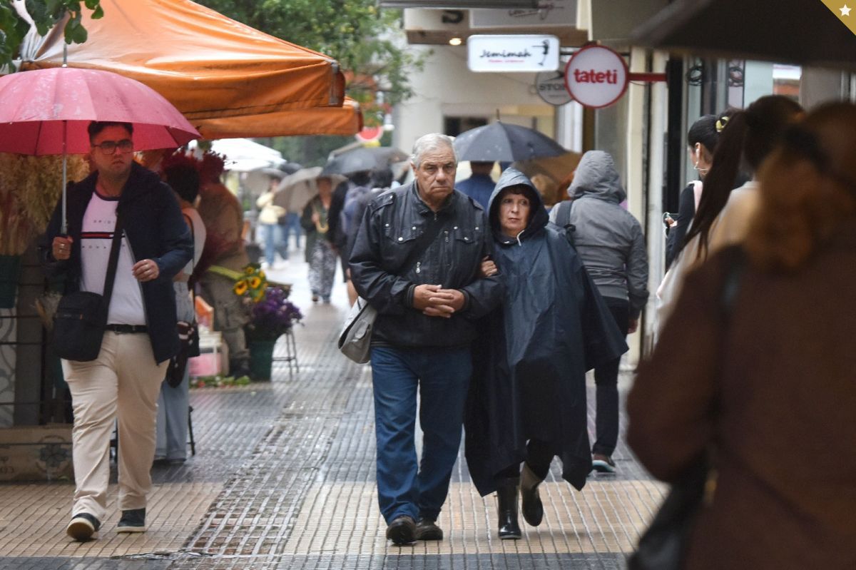 UNA IMAGEN REPETIDA. Los paraguas y los pilotos fue parte del paisaje habitual en las calles de Tucumán el mes pasado. LA GACETA / FOTO DE MARÍA SILVIA GRANARA
