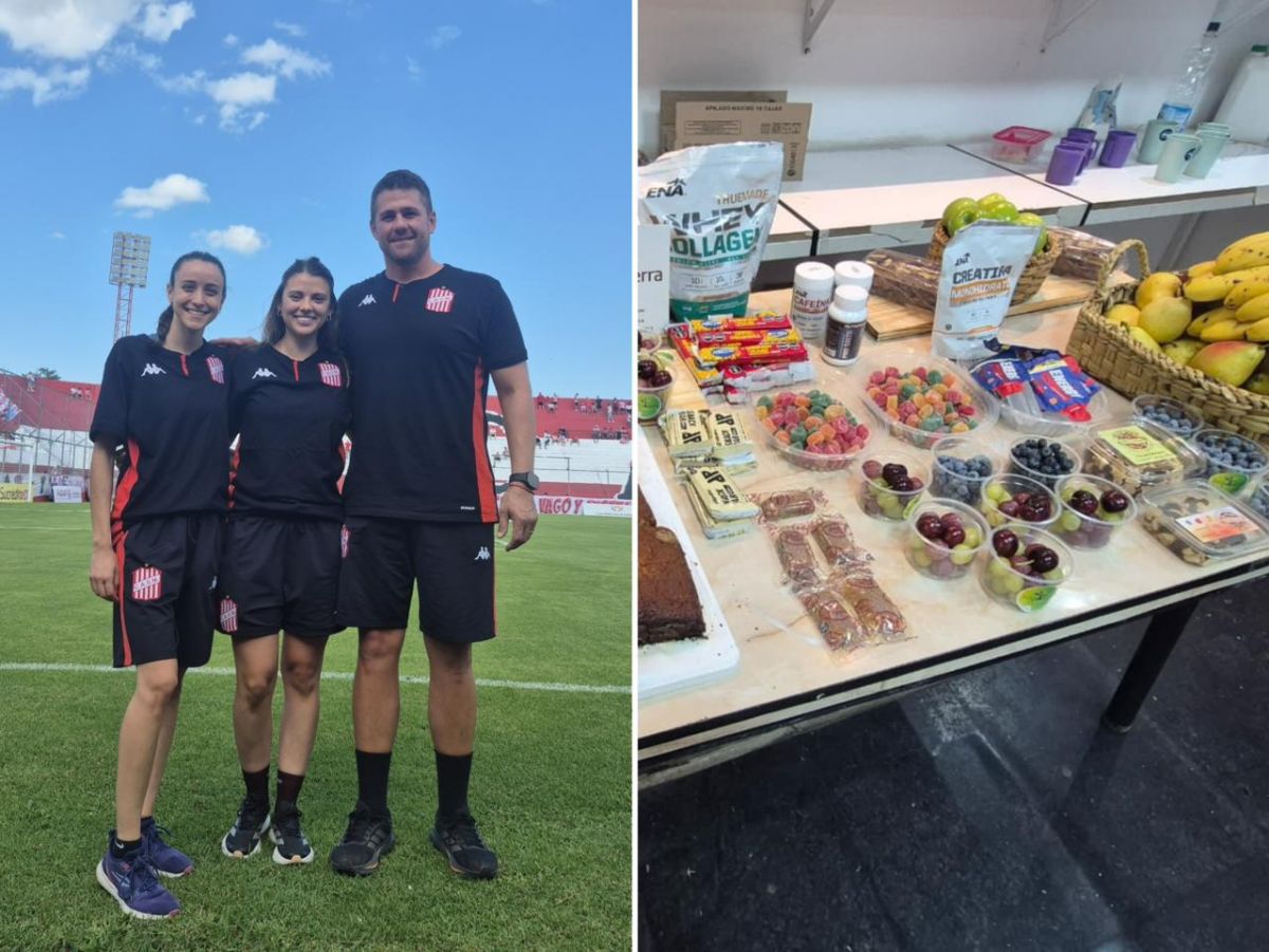 EQUIPO. Nicolás Ramos y sus colegas Valentina Martínez y Antonella Fonicielo lideran el área de nutrición de San Martín. A su lado, algunas de las comidas que forman parte del menú del plantel.