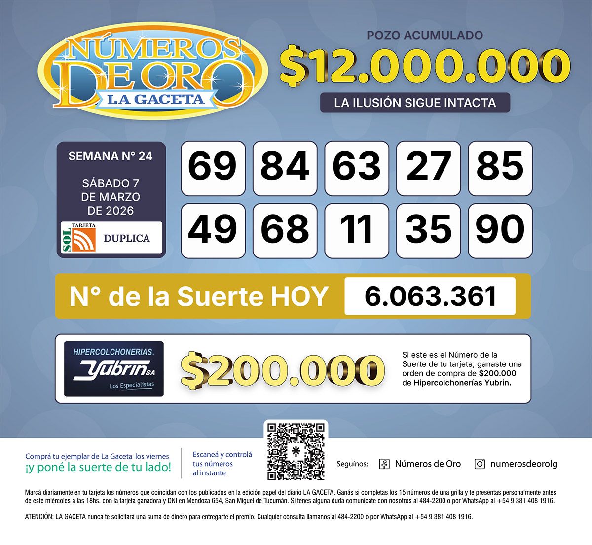 Los Números de Oro de LA GACETA del 7 de marzo de 2026