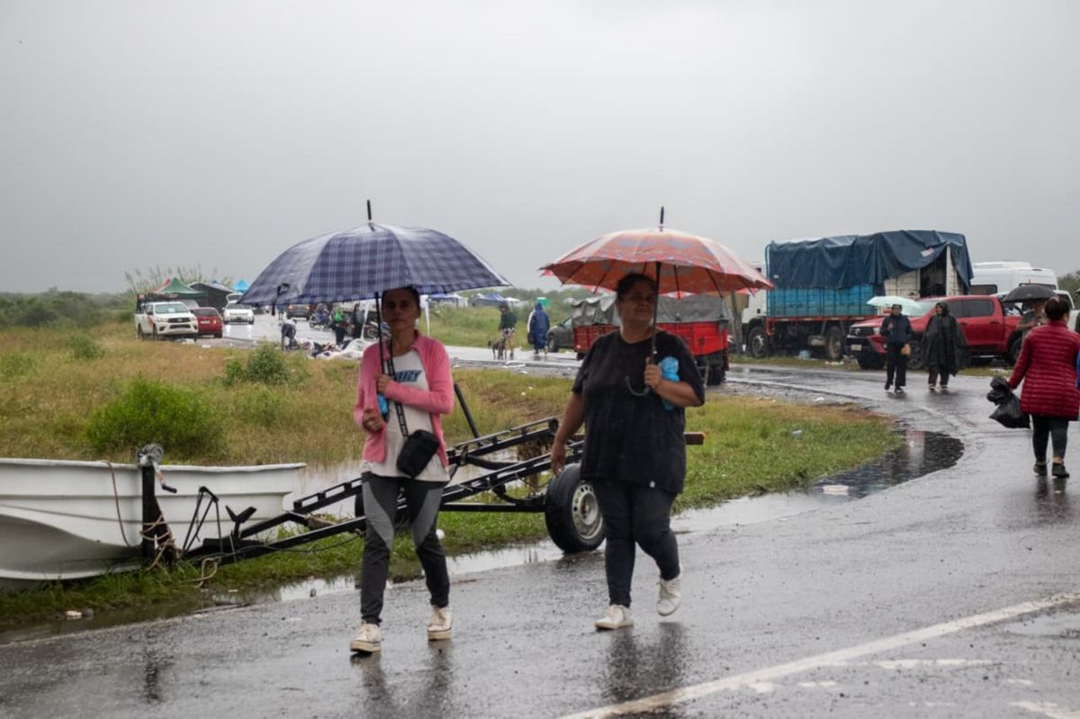 Segundo día sobre la ruta, vecinos de La Madrid siguen refugiados sobre la ruta 157. Las lanchas están sin salir por falta de combustible MATÍAS VIEITO/LAGACETA