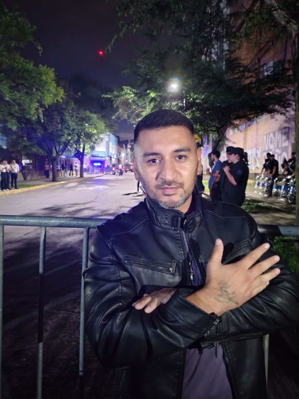 CON CAMPERA DE CUERO. René Giménez muestra la firma de Milei.