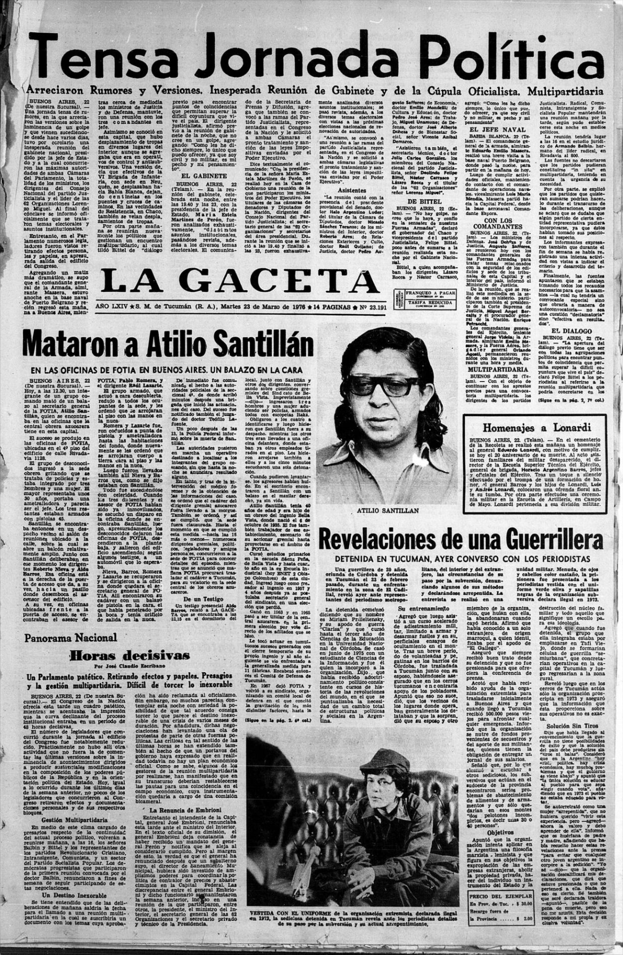 A las 12.30 del lunes 22 de marzo de 1976 un grupo de desconocidos -tres hombres y una mujer- ingresó a las oficinas que la Fotia (Federación Obrera Tucumana de la Industria Azucarera) tenía en Buenos Aires y asesinó al secretario general del gremio, Atilio Santillán. La noticia paralizó a los tucumanos, al punto de desplazar momentáneamente del debate público al inminente golpe de Estado, del que se hablaba en todo el país.