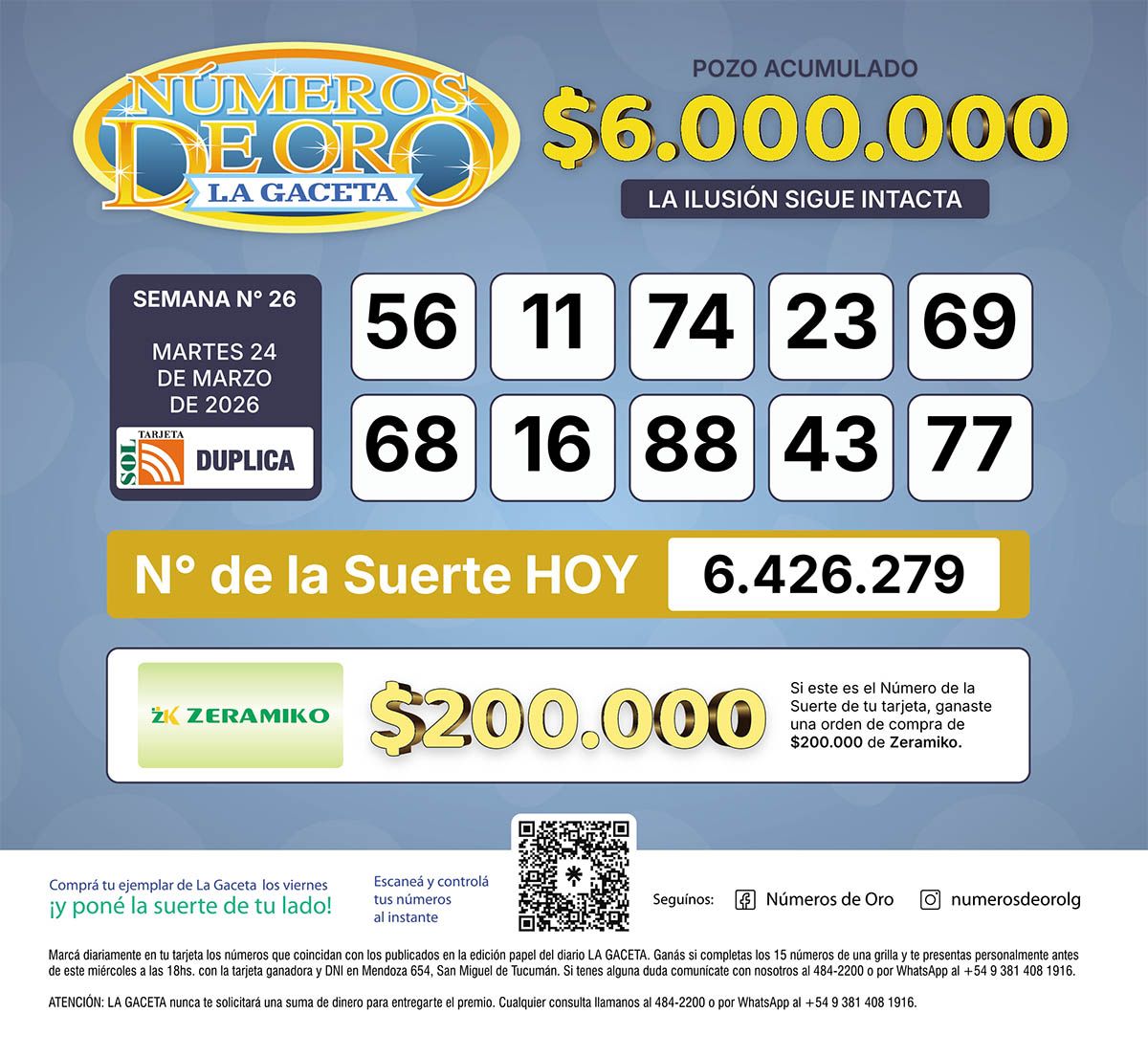 Los Números de Oro de LA GACETA del martes 24 de marzo de 2026