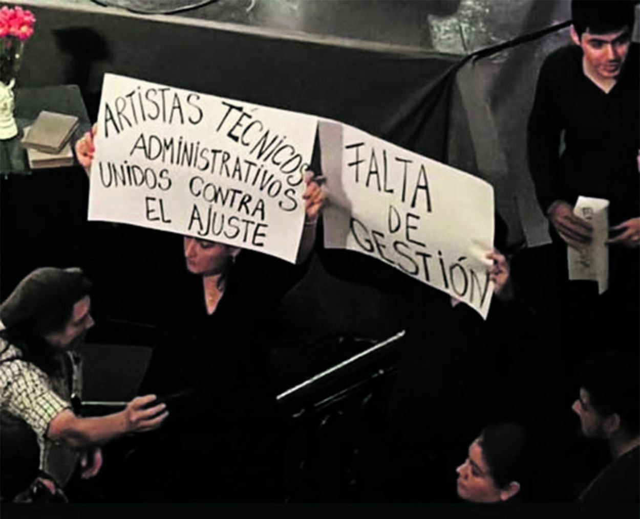 “Cuando nuestros teatro, salas y museos se caen a pedazos, están silenciando nuestra historia”, se remarcaba en el documento de los cuerpos estables leído por una voz en off. “Cuando se recorta el presupuesto, se precariza el trabajo de músicos, bailarines, actores, técnicos y administrativos, están asfixiando el alma de nuestra provincia. A Salazar le decimos: deje de darnos la espalda. La cultura no es una foto de protocolo, es el esfuerzo diario de hombres y mujeres profesionales y capacitados que hoy dicen basta. Exigimos al presidente del Ente y a su gabinete que cumplan con su deber”, se agregaba. Entre los carteles estaba la consigna “+gestión -mentiras”.