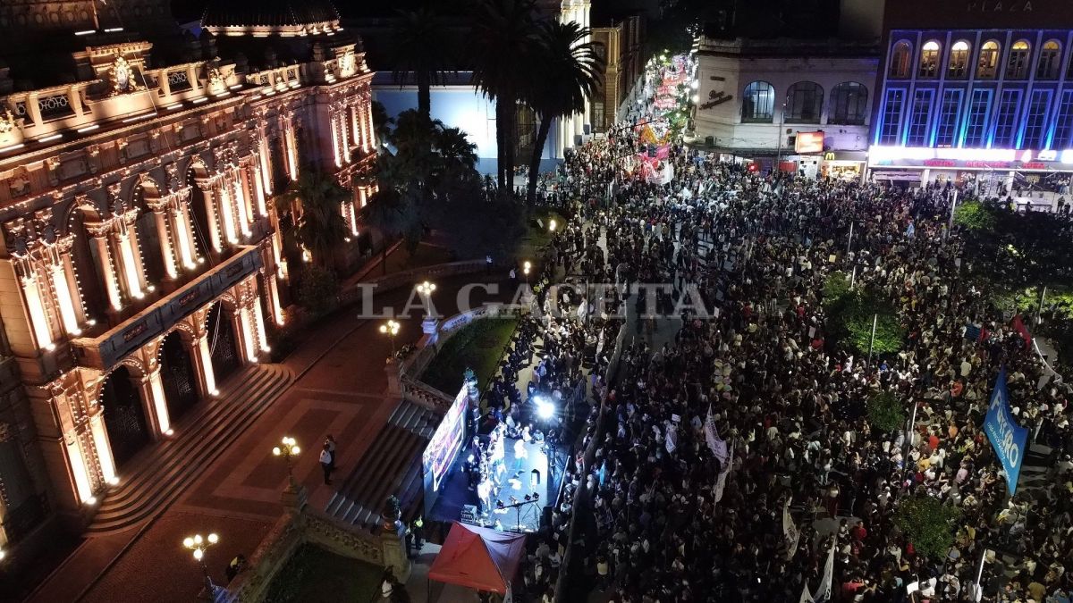 La plaza Independencia abrazó a la multitud tucumana que se movilizó en conmemoración de los 50 años del Golpe de Estado. “Memoria, verdad y justicia”; “ni olvido ni perdón”; “qué digan dónde están”; y “30.000 detenidos y desaparecidos presentes”, fueron las principales consignas en una movilización unificada que congregó unas 25.000 personas, según los organizadores. Pero los reclamos también apuntaron contra las decisiones políticas del gobierno nacional de Javier Milei y la determinación de los parlamentarios que responden al gobernador Osvaldo Jaldo de acompañar numerosos proyectos libertarios en el Congreso.
