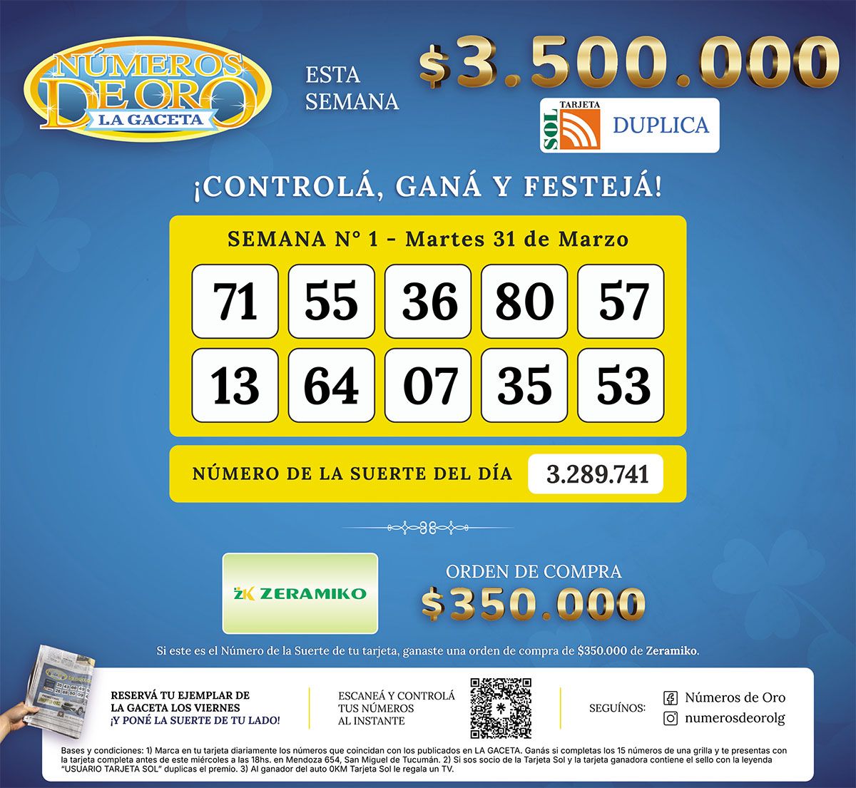 Los Números de Oro de LA GACETA del 31 de marzo de 2026