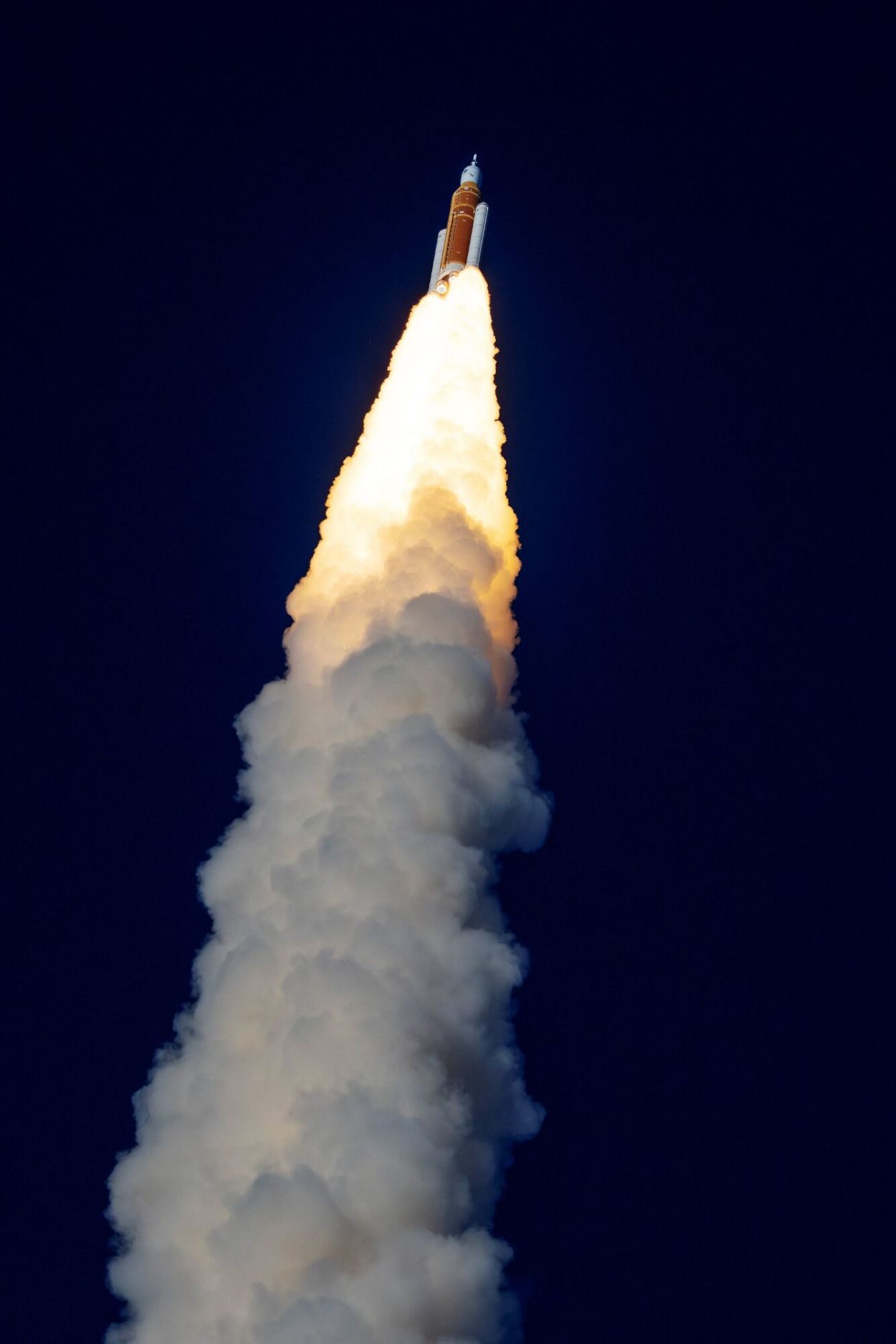 A las 19.43 (siempre hora de nuestro país), y como estaba previsto, la cápsula Orion se desprendió de los inmensos depósitos del cohete Sistema de Lanzamiento Espacial (SLS, siglas en inglés de Space Launch System), que la impulsó al espacio y la puso en la órbita terrestre.